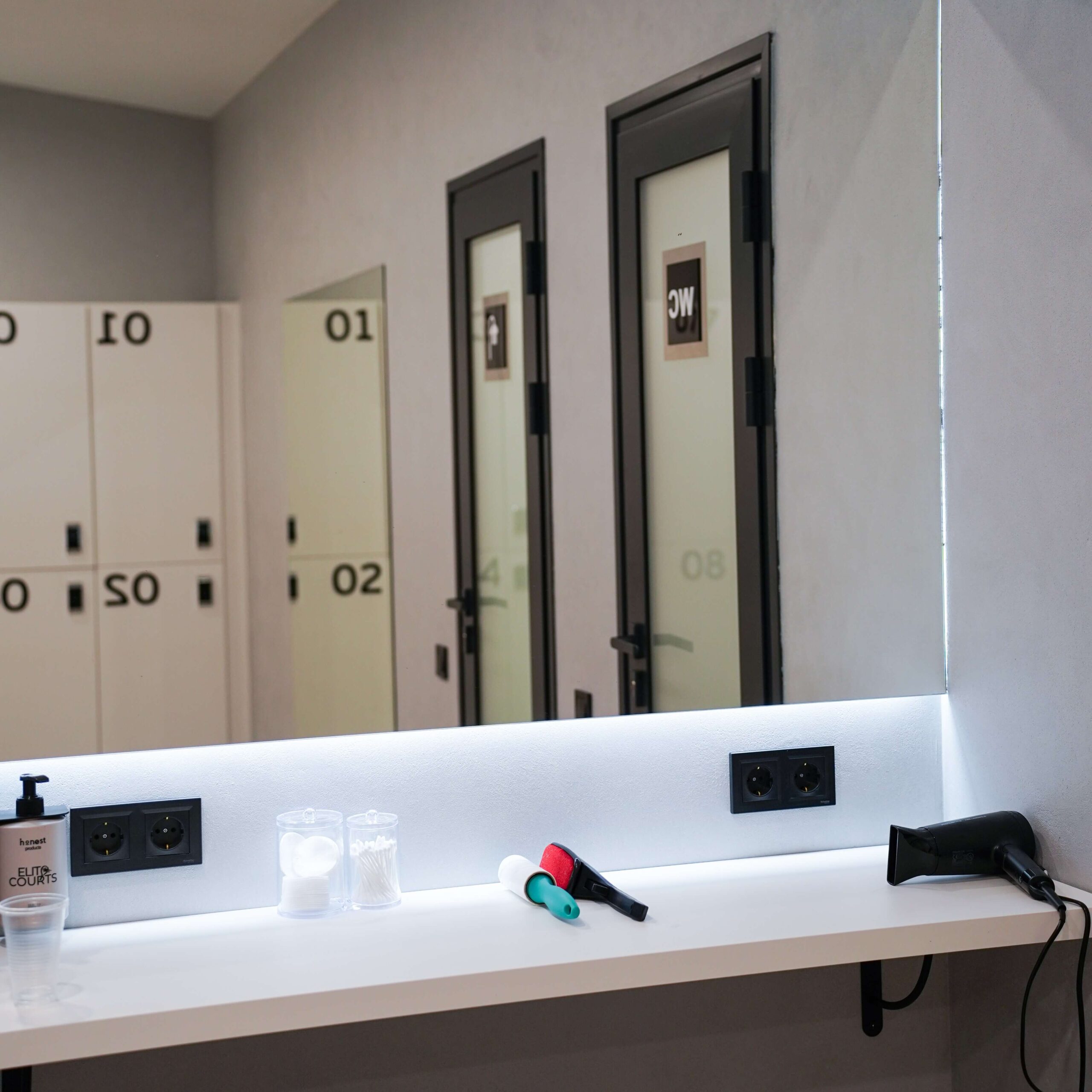 У наших роздягальнях є душові (по чотири у кожній роздягальні), в яких на вас чекатимуть професійні засоби для догляду бренду Honey. Після інтенсивної гри ви зможете комфортно освіжитися та привести себе до ладу.
