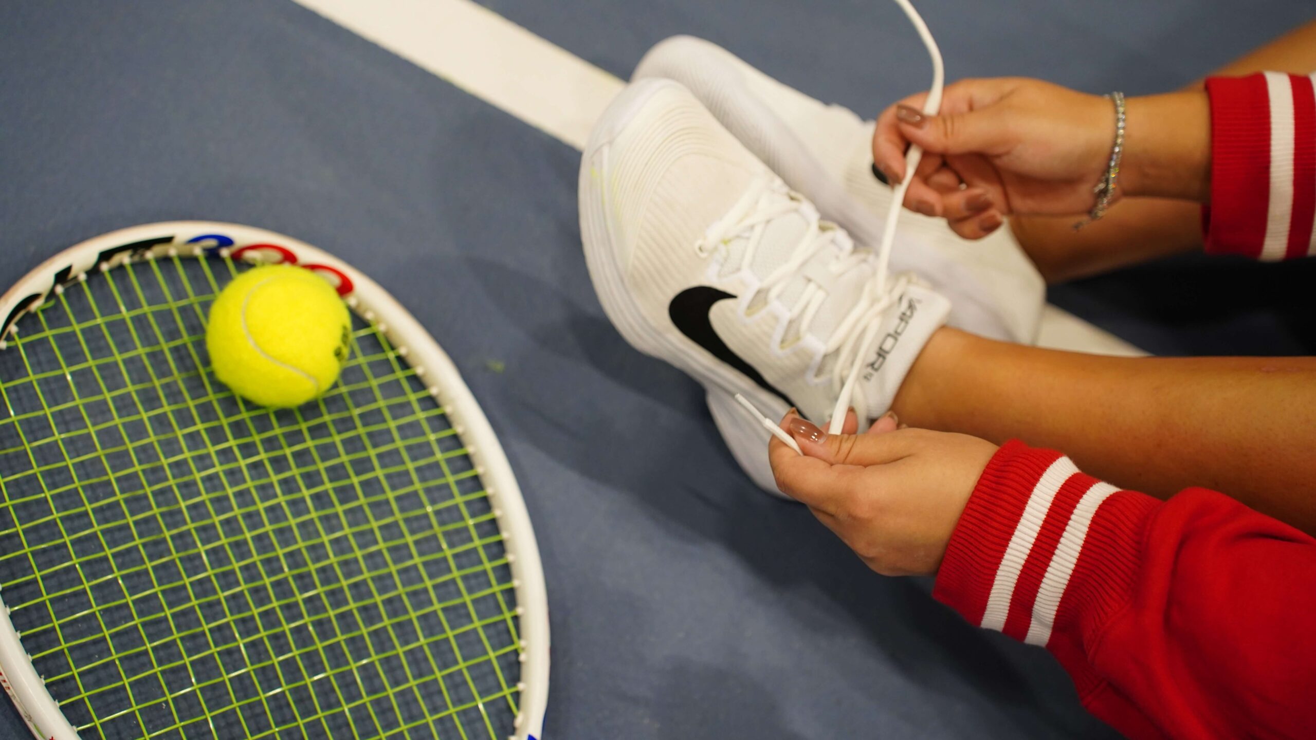 Одягай зручний спортивний одяг, який не обмежує рухи - футболку, шорти або спортивні штани. Обов'язково візьми пляшку води та рушник. Важливо: для гри на hard-покритті для тенісу потрібні спеціальні тенісні кросівки. Вони забезпечать правильне зчеплення з поверхнею та збережуть твої коліна й стопи від зайвого навантаження. Звичайні кросівки для бігу або фітнесу не підійдуть - вони можуть призвести до травм через неправильну підтримку стопи при швидких бічних рухах.